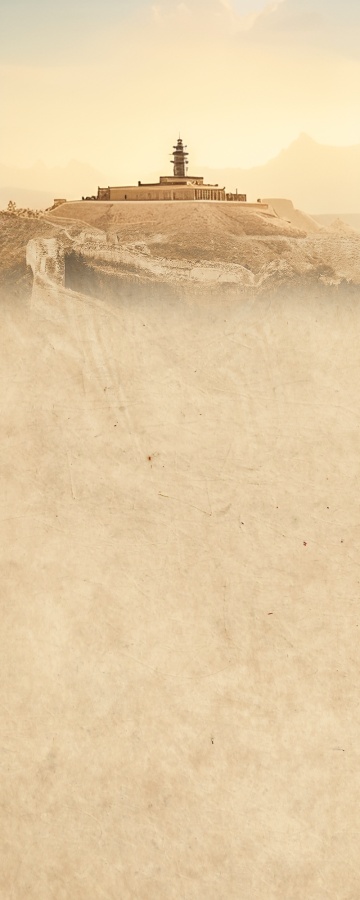 写意风格的沙漠景观,以大面积的土黄色和沙丘的波浪线条构成主体,远处是轮廓柔和的淡棕色山脉,天空为纯净的白色留白,沙丘表面有细腻的纹理和自然的曲线起伏,整体色调温暖统一,营造出宁静辽阔的氛围,体现丝绸之路沙漠的苍茫与悠远意境,画面简洁而富有层次感,具有自然流畅的视觉引导。