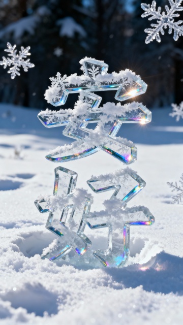 冰雕风大字“大雪”悬浮于古巷,清透光影交织,中式古典与梦幻唯美交融,液态质感尽显静谧优雅。