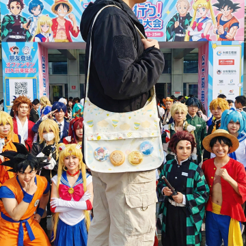 图一和图二,在漫展里合拍,没有其他人,俯拍视角,光线明亮。