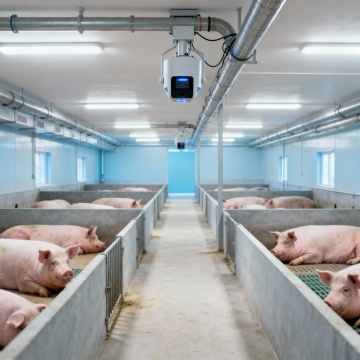 超写实风格的现代实验室场景,以蓝色和白色为主色调,光线明亮柔和,采用高清晰度的摄影质感,画面干净规整,适合做背景。实验室内部有身着白色防护服的研究人员正在操作先进的精密仪器,仪器外观呈白色和蓝色,带有显示屏和控制面板。背景是由白色方块和灰色方块组成的墙面,地面为浅色,整体环境整洁有序,设备排列整齐,空间感开阔,营造出专业、严谨、科技感十足的氛围,无任何文字、LOGO、二维码及冗余信息,视觉焦点清晰,细节丰富,适合作为科技、医疗、研究相关的背景使用。