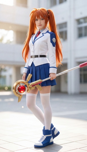 杰出的,最佳质量,高分辨率,真实人像,角色扮演cosplay ,巨大化真希波·凌波丽。她有着标志性的白色色头发,高马尾长发