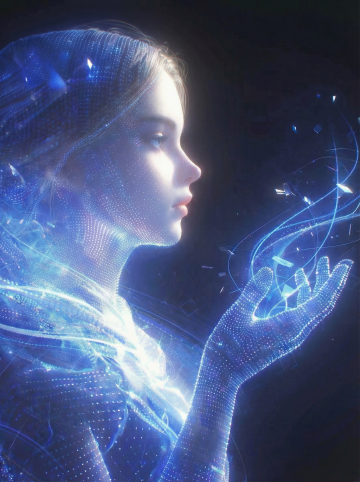 侧视构图,在一座被月光浸透的古老神社鸟居下,一位身着改良巫女服的少女正跪坐在漂浮的和纸灯笼上,她的银白色短发上系着朱红色的发带,几缕发丝被夜风吹起,发间别着一朵半开的黑色山茶。巫女服以墨色为底,领口和袖口绣着渐变的荧光蓝蝴蝶纹样,腰间系着深红色的蝴蝶结,裙摆下露出一截白皙的小腿和木屐。她的手中握着一支正在滴落星光的毛笔,笔尖触及之处,水面上便绽放出淡蓝色的符文涟漪。周围环绕着十二只形态各异的狐狸式神,有的通体雪白,有的毛色漆黑,眼睛都散发着幽幽的蓝光。背景是被薄雾笼罩的日式庭院,石灯笼散发着温暖的橙光,远处是连绵的黑色山峦轮廓和一轮巨大的血月,水面漂浮着散落的樱花花瓣和燃烧的线香灰烬,色调是神秘的靛蓝与朱砂红的交织,光影在巫女服的丝绸面料上形成柔和的漫反射。