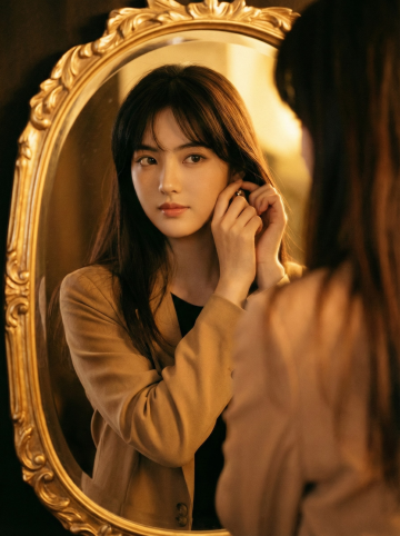 油画风肖像与现实少女呼应,古典宫廷艺术氛围浓厚,文艺优雅交织,仿佛穿越时空的对话。