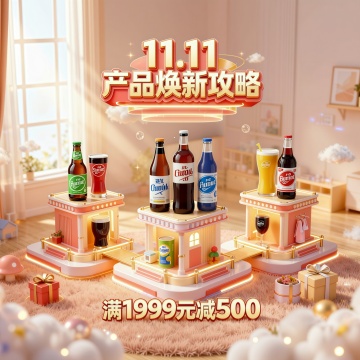 3D重拟物风格,融合波普艺术与金属质感,粒子飞溅营造喜庆氛围,红金配色呼应节日主题,礼盒开箱瞬间释放真我时刻。