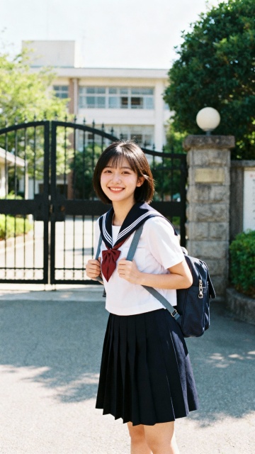 清新实景动漫风,少女站台眺望,蓝天白云映衬,青春气息扑面。