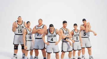 现代感与潮流感交融,双色设计风搭配拟人化夸张腿长,营造视错觉艺术效果,面料垂坠质感强化实景感,篮球场背景凸显时尚运动美学。