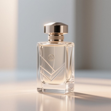 奢华感与优雅感交织,现代3D玻璃瓶身搭配金属盖,光影流动中展现重拟物质感,尽显高端美学。