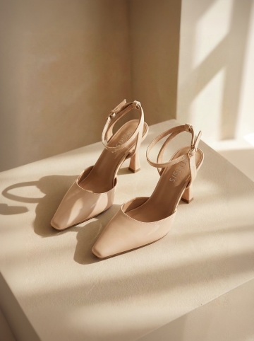 极简风格高跟鞋,毛发生长质感与面料肌理交织,柔和光影烘托优雅时尚氛围,传递冬日温柔美学。
