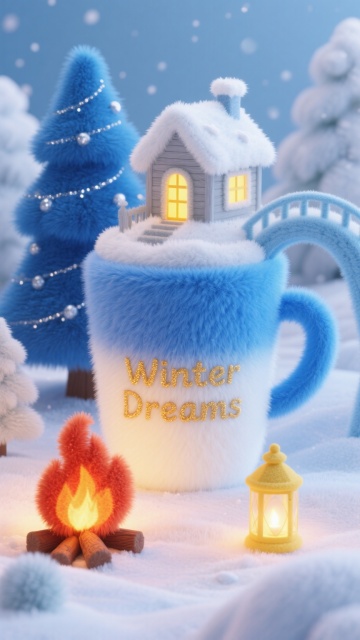 将图示商品变成毛毡质感,瓶身有精致图案,还原商品颜色细节。冬日新年场景