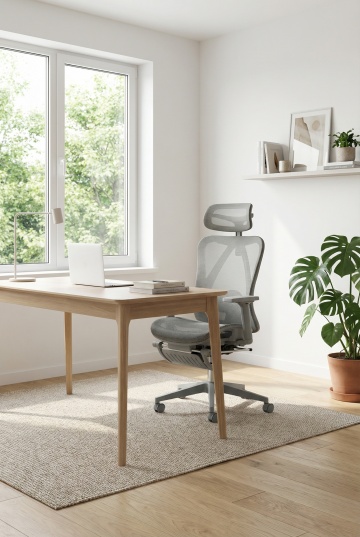自然光从窗户斜射而入,在浅色墙壁上投下清晰的窗格阴影,营造出明亮通透、宁静舒适的居家办公氛围。一张原木色桌面的书桌,桌面光滑有自然木纹,桌腿为白色简约设计。桌上放置着不同场景和布置:左侧可能是一盆茂盛的绿色观叶植物,右侧是一台打开的银色笔记本电脑,电脑旁叠放着几本不同厚度的书籍,书籍上点缀着一盆小型多肉植物在白色花盆中;或者桌面上是一盏简约设计的台灯,旁边散落着几本翻开的笔记本和一支金属钢笔,桌角可能还有一个小巧的相框或一个复古风格的时钟;又或者是桌面上整齐排列着绘画工具,几支不同型号的画笔插在陶瓷笔筒中,旁边放着打开的颜料盒和一张铺展开的素描纸,角落点缀着一杯热气腾腾的咖啡杯。整体画面采用写实主义风格,色彩以原木色、白色、绿色为主,光影对比柔和,细节丰富,展现出现代简约而不失温馨的不同书桌场景布置。