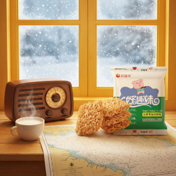 清新感与文艺感交织,双色设计风搭配重拟物风呈现薯片质感,胶片风色调营造舒适氛围,印刷风文字点缀,传递时尚而温柔的味觉期待。