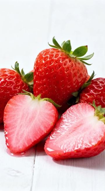 一堆新鲜饱满的草莓,表面覆盖着晶莹的水珠,散发着诱人的光泽,草莓的叶子呈现出鲜亮的绿色,背景为红色,整体画面色彩鲜艳,充满了生机与活力,具有高度的写实感和细腻的质感表现,光影效果突出,营造出一种新鲜、美味的氛围。