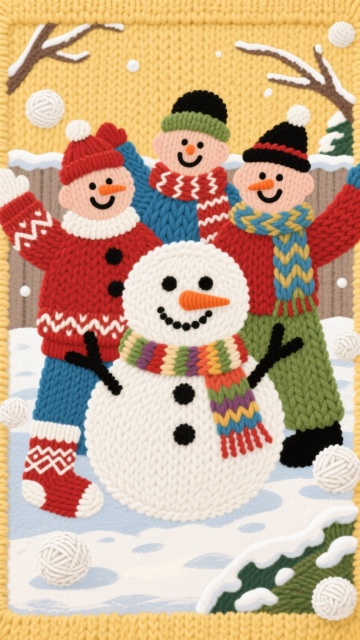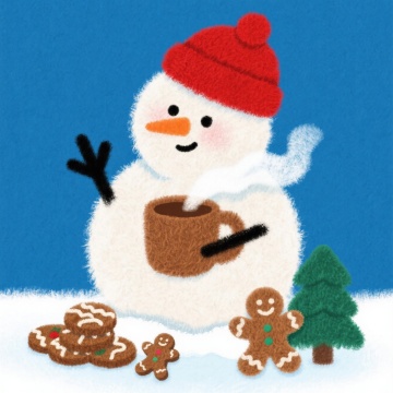 软3D风格雪人,毛线缠绕呈现面料质感,拟人化表情可爱生动,手持雪花营造梦幻温馨氛围,蓝色渐变背景点缀飘雪,节日趣味感十足。