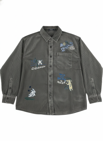 潮流复古插画风T恤,搭配简约黑裤与手表,展现独特漫画风格。