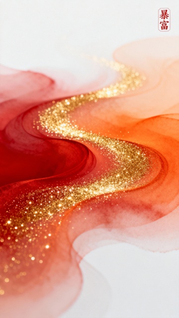 金色鎏金背景,带有细腻的金色闪光和丝滑的质感,呈现出流动的波浪形态,光线从右上角照射,形成明亮的高光和柔和的阴影,整体色调从浅金色到深金色渐变,带有不规则的漩涡状纹理和闪烁的金色微粒,营造出奢华而动感的视觉效果。