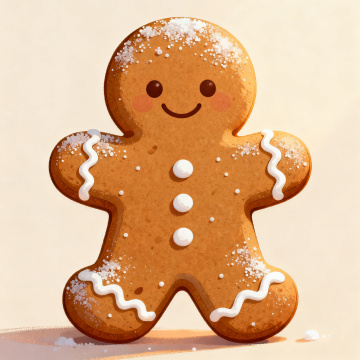 毛线编织风格的姜饼人,融合刺绣风与软3D质感,雪中萌趣十足,节日喜庆氛围浓厚。