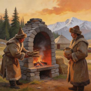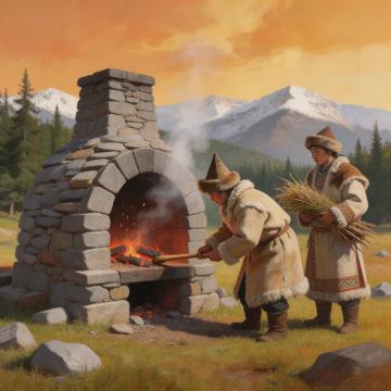中式古典场景,3D重拟物风呈现古代城建实景,水墨与岩彩元素融合,人物服饰考究,展现先民筑城劳作的生动画面。