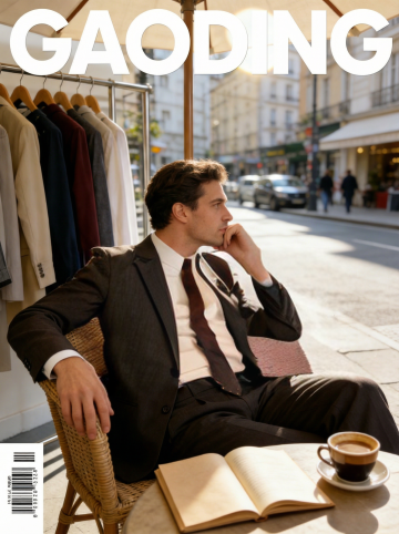 杂志风封面,融合商务感与文艺气息,实景街景搭配时尚穿搭,印刷质感突出,展现都市精英的优雅生活。