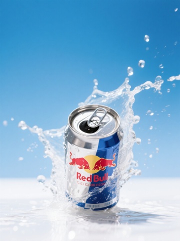 清爽感与清透感交织,现代感十足的双色设计风,重拟物风结合液态飞溅实景,展现Red Bull的活力瞬间。