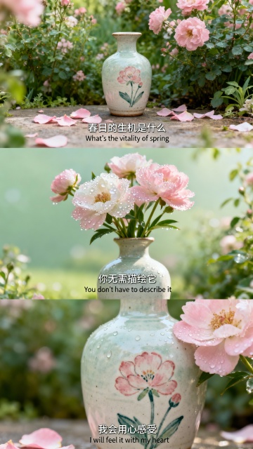 全景俯拍视角,在一座被晨光温柔唤醒的百年老校舍三楼走廊尽头,一间微微敞开着木门的教室正悄然诉说着时光故事——褪色的墨绿色黑板上用白色粉笔写着数学公式和几句潦草的励志格言,黑板边缘还挂着泛黄的世界地图,阳光透过爬满常春藤的玻璃窗,在地面切割出菱形光斑,光斑中漂浮着细小的尘埃。二十张核桃木课桌呈整齐的四列排列,每张桌面上都有深浅不一的刻痕,其中一张靠窗的课桌上,压着半块橡皮、翻开的语文课本(第三十七页的《从百草园到三味书屋》被阳光照亮),以及用玻璃瓶装着的野雏菊。教室后方的黑板报上用彩色粉笔绘制着"新学期新希望"的主题画,角落的饮水机旁堆着几个空水桶,墙角的老式吊扇正缓慢转动,在天花板上投下旋转的阴影,空气中弥漫着粉笔灰、旧书本和淡淡消毒水混合的味道,色调以温暖的赭石色木质纹理为基底,点缀着苔藓绿黑板与天蓝色窗帘的清新对比。