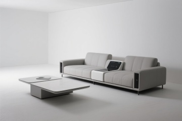 一个超高清的现代平板电视产品展示图,采用极简主义3D渲染风格,纯黑色哑光屏幕与光滑的黑色边框无缝衔接,屏幕右侧有一道柔和的高光斜切过渡,展现出细腻的玻璃质感和金属边框的精致光泽,底部配备纤细的黑色金属支架,整体悬浮于纯白色背景之上,光线均匀柔和,突出电视的超薄机身和优雅的几何线条,营造出高端、科技感与简约美学兼具的氛围,无任何文字或标识干扰主体展示。