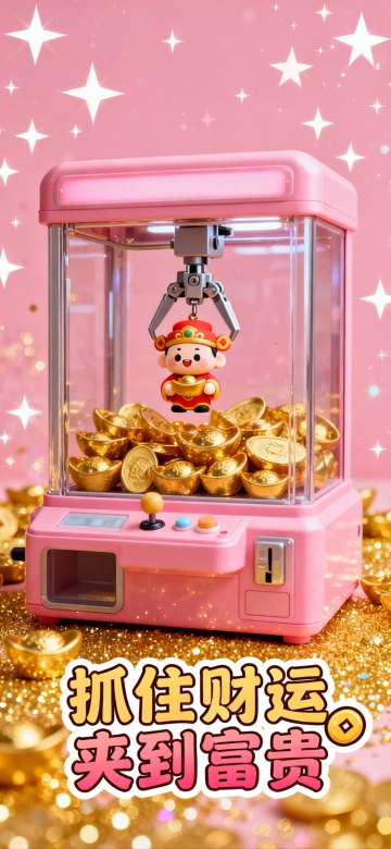 软3D毛绒字体搭配霓虹光晕,萌趣角色与红包金币环绕,营造梦幻喜庆的春节氛围。
