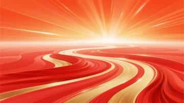 一张具有高级感的红色渐变背景海报,以红色为主色调,从上部的浅粉色逐渐过渡到中部的正红色,再到下部的深红色,色彩和谐且富有层次感。画面中金色的粒子和闪光点缀其中,分布不均,右侧有一片较为密集的金色闪光点,增添了华丽和闪耀的氛围。底部有一条金色的波浪形线条,线条上带有细密的网格纹理,呈现出流畅的曲线形态,从左下角向右上角延伸,动感十足。整体构图采用了视觉引导线,引导观者视线跟随波浪线和闪光流动,光影运用柔和,高光主要集中在金色线条和闪光点上,阴影细节较少,整体呈现出明亮、喜庆且科技感十足的氛围。背景简洁干净,没有多余的元素,信息传达效率高,留白恰到好处,使得主体视觉元素更加突出,具有强烈的现代设计感和节日庆典的感觉。