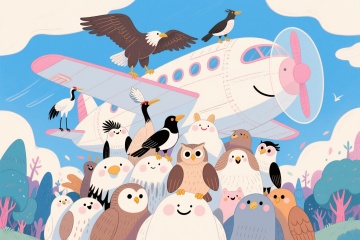 3D卡通风格,拟人化小鸟展翅飞翔,毛发生长效果增添可爱感。