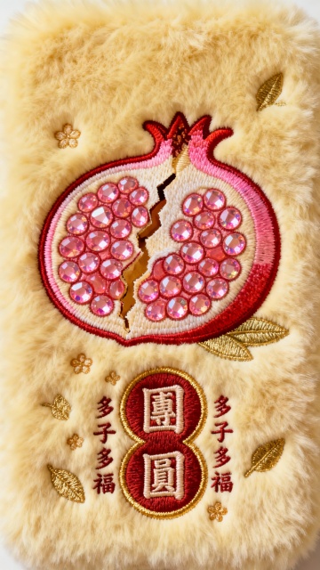 米白毛绒底,金菊刺绣配铜钱,红 “富贵盈门” 字,暖奢交织,满是富贵吉祥意。