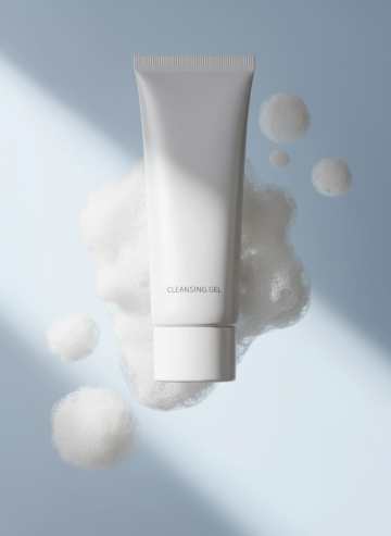 性冷淡风简约设计,轻拟物泡沫粒子环绕洁面凝胶,清透柔和光影营造清爽舒适感,极简美学呈现洁净仪式。