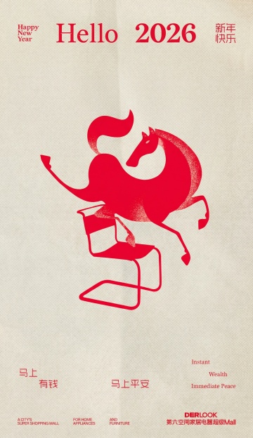 国潮风几何剪纸马,鎏金红韵迎新春,喜庆中式贺2026年。