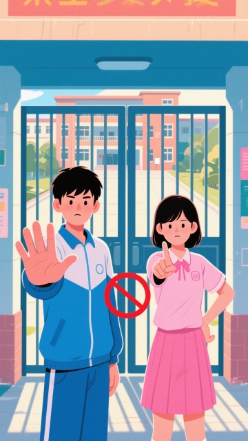 温馨插画风,教师轻抚学生脸颊,传递关爱与温暖,营造和谐课堂氛围。