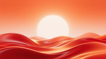 具有高度政务感的背景设计,以明亮的橙红色为主色调,搭配温暖的金黄色渐变,形成和谐庄重的色彩氛围。画面底部是流畅动感的红色波浪线条,线条边缘带有细腻的金色高光和光晕效果,呈现出丝绸般的光滑质感和金属光泽。背景整体采用柔和的放射状光线,从中心向四周扩散,营造出明亮开阔、积极向上的视觉感受,光线过渡自然平滑,无明显阴影,只有轻微的光影渐变增强空间感。整体风格现代简约而不失大气稳重,适合作为政务宣传、政策解读、党建活动等正式场合的背景,传递庄重、权威、温暖且充满希望的政务形象。
