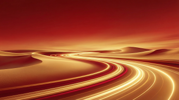 一张具有高级感的红色渐变背景海报,以红色为主色调,从上部的浅粉色逐渐过渡到中部的正红色,再到下部的深红色,色彩和谐且富有层次感。画面中金色的粒子和闪光点缀其中,分布不均,右侧有一片较为密集的金色闪光点,增添了华丽和闪耀的氛围。底部有一条金色的波浪形线条,线条上带有细密的网格纹理,呈现出流畅的曲线形态,从左下角向右上角延伸,动感十足。整体构图采用了视觉引导线,引导观者视线跟随波浪线和闪光流动,光影运用柔和,高光主要集中在金色线条和闪光点上,阴影细节较少,整体呈现出明亮、喜庆且科技感十足的氛围。背景简洁干净,没有多余的元素,信息传达效率高,留白恰到好处,使得主体视觉元素更加突出,具有强烈的现代设计感和节日庆典的感觉。