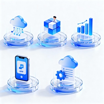 科技感十足的3D玻璃云朵,融合轻拟物设计,清透蓝调展现未来感数据上传与安全防护,视觉简洁而富有层次。