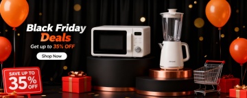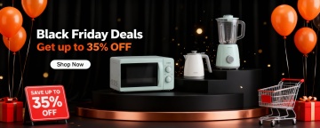 3D立体鎏金风设计,重拟物质感家电悬浮呈现,金属光泽强化促销感,红金配色烘托双十一购物狂欢氛围。