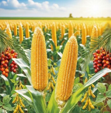 3D风重拟物设计,实景感与自然感交融,清新质朴的田园场景,柔和光影下玉米饱满湿润,传递舒适与丰收的秋日氛围。