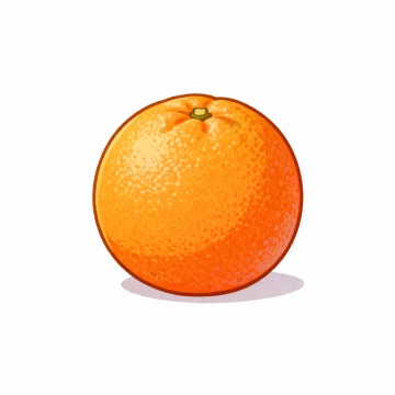 一杯装满橙黄色冰爽果汁的透明塑料杯,杯中漂浮着多块棱角分明的透明冰块和数片新鲜橙子切片,杯口边缘斜放一片完整的橙子片,果汁表面有细密气泡,整体呈现出明亮通透的光泽感,白色背景干净简洁,采用手绘插画风格,线条流畅柔和,色彩饱和度略高,带有细腻的水彩晕染质感,光影柔和自然,营造出清新夏日的氛围。