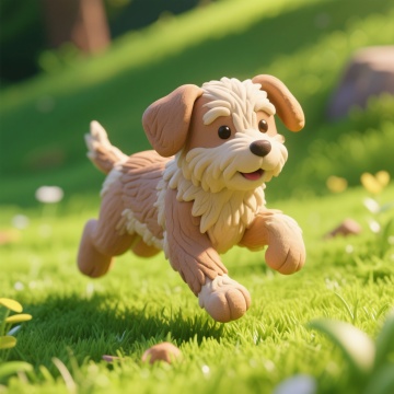 软3D粘土风,萌趣小狗戴围巾,温馨卡通场景,充满可爱与趣味感,适合节日氛围。