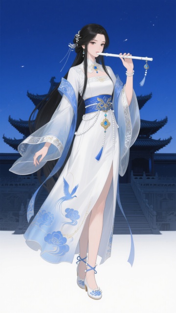 在温馨柔和的氛围下,逆水寒风格二次元花美男插图。画面聚焦于主体——拥有一头俊酷飘逸的长发,头发上有个金属光闪闪的发簪。男孩身着白色流沙飘逸的长袍,手里拿着古风扇子,扇子上写有有财鎏金大字。古风
