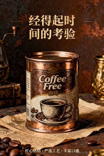 插画风拼贴设计,拟人化咖啡元素环绕,突出“NO.1”促销感,节日氛围浓厚,视觉冲击力强。