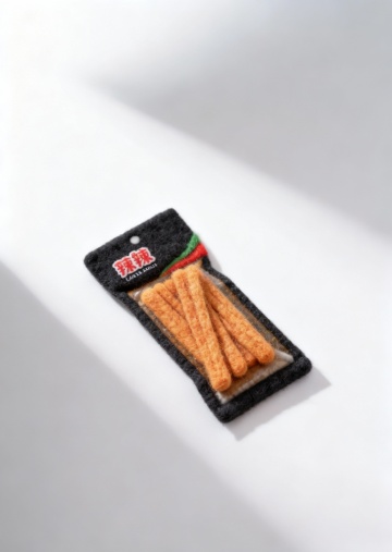光影感十足的轻拟物风设计,塑料质感包装搭配实景感呈现,辣味零食以极简美学诠释节日氛围。