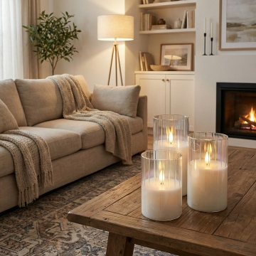 复古质感陶瓷烛台,浮雕枝叶纹饰,搭配皮影鹿影光影,金属勺与松果点缀,营造温馨质朴的圣诞文艺氛围。