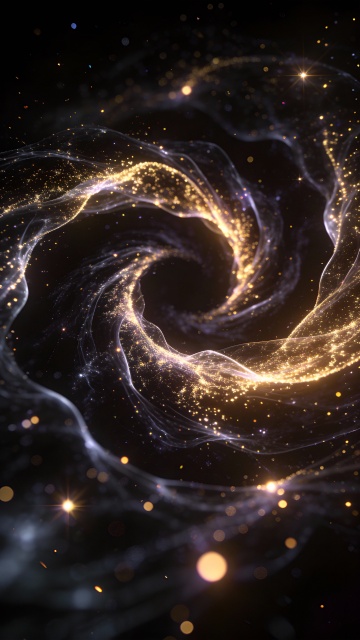 深邃宇宙背景下,一条由璀璨星光组成的螺旋状星云,星光呈现出梦幻的蓝紫色调,夹杂着闪烁的银色光点,整体散发着神秘而宁静的氛围,星云的螺旋结构清晰,星光分布疏密有致,边缘柔和过渡,仿佛在黑色的画布上流动,充满了动态的美感和宇宙的浩瀚感。