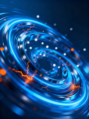 未来感科技蓝,粒子风螺旋设计,展现数字时代的无限可能。