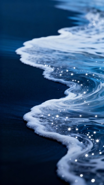 清澈透明的水面,阳光照射下波光粼粼,水面上有细腻而富有动感的波纹,波纹呈现出柔和的曲线形态,整体画面具有写实的质感,光影效果明亮自然,高光部分闪耀着白色的光芒,阴影部分则呈现出深邃的颜色,色彩改为深邃神秘的深蓝色调,蓝色由浅至深自然过渡,营造出宁静而富有层次感的氛围,没有任何文字、LOGO、二维码及地址信息。