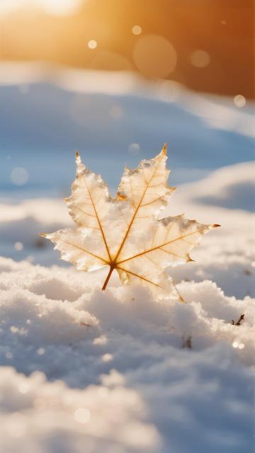 冰晶质感的“立冬”二字,融合3D重拟物与玻璃风设计,清透梦幻,点缀橙果与红叶,展现中式节气之美。