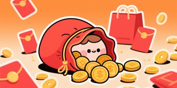 插画风红包拟人化,金币溢出,喜庆卡通感十足,节日氛围浓厚。
