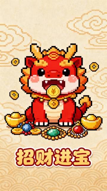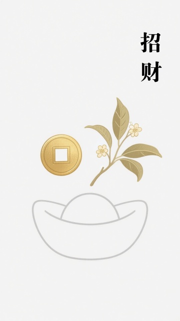 扁平化 Q 版发财壁纸,奶白底色 + 亮金 + 正红撞色,所有元素均为纯色块拼接(无渐变、无复杂阴影),仅用 1px 细黑描边勾勒轮廓。画面中心是圆滚滚的 Q 版金蟾(浅金色块 + 红腮红,眯眼笑,爪子抱元宝),右侧是红白相间的 Q 版锦鲤(身体是半圆色块,鱼鳍是三角小色块,嘴里叼铜钱),左侧是扁平化招财猫(橘色色块 + 黑圆眼睛,举着‘暴富’字牌)。周围散落迷你元宝(纯金色块)、铜钱(黄圆色块 + 中心黑方块),底部用红底白字的圆润字体写‘招财进宝’(带细黑描边)。元素布局松散不拥挤,色块边缘整齐利落,无多余装饰,整体可爱又简洁,扁平化质感纯