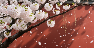 水彩风格插画,以纯净的白色为背景,画面主体为一束盛开的粉色樱花,花瓣呈现柔和的粉白渐变,花蕊为淡黄色,枝干纤细呈深褐色,部分樱花含苞待放,大量粉色花瓣从枝头飘落,形成轻盈飘逸的动感,整体色调清新淡雅,光影柔和,笔触细腻,营造出浪漫唯美的春日氛围。